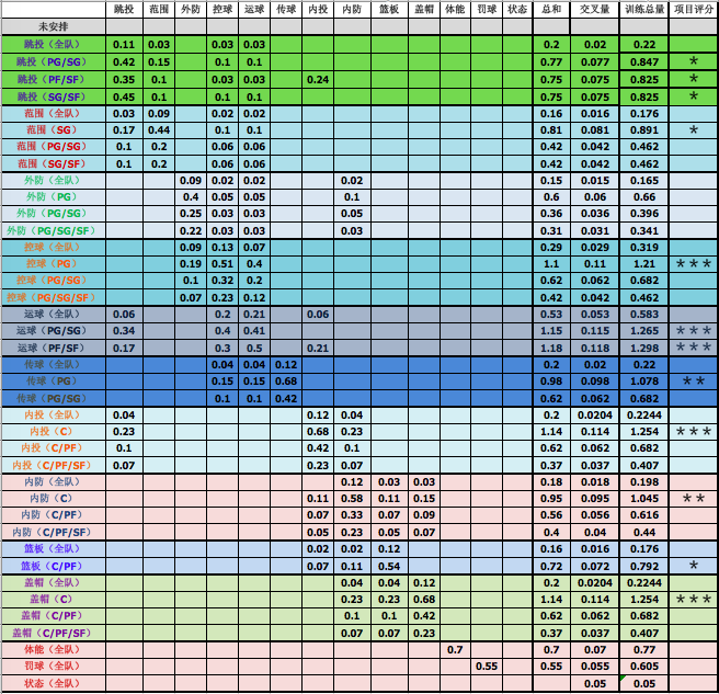 це такий, професійний РЗ ). сезон 1-на-1 захисники, якщо ближнього кидку немає зовсім. якщо він є, то сезон 1-на-1/кус форварди, змінюючи ці тренування так, щоб драйвінг не був вищий за кус. сезон ЗЗ, сезон пасу, до тих самих 15-13(14). у 21 діапазон до 10, пару апів ЗЗ, 1-на-1 захисники. найкраще що в нас було це вішня та біба/суркіс. якщо їх трошки підкорегувати, то ціль на кінець 21 року щось типу 14-10-17-13-13-13-9, а на початок відповідно 10-9-15-10-10-13. заготовка має ЗЗ, пас, та не завалені усі інші верхні навички. пот 6+